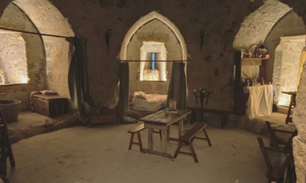 Reconstitution d’un espace d’hostellerie, lieu d’accueil et d’échange essentiel dans la société médiévale.